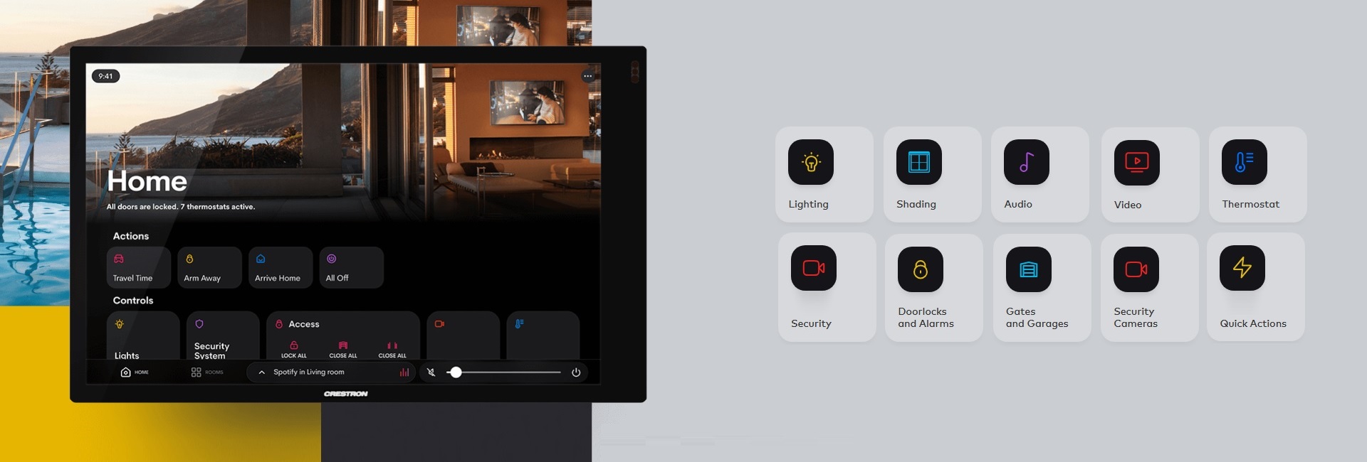 Crestron HOME is het meest eenvoudige, intuïtieve en allesomvattende domotica systeem van nu en de toekomst. Bedien en beheer je complete woning met alle denkbare audio, video, verlichting, verduistering, klimaatbeheer en security integraties. Maak kennis met HOME van Crestron bij iEar’ en geniet binnenkort ook van de luxe en het comfort van het nummer één residentieel domotica systeem. Een Crestron-huis is gewoon slim. Alles in huis eenvoudig bestuurd op één intelligent platform. Jouw huis wordt veiliger, comfortabeler en slim.WelzijnJouw huis ter bevordering van jouw gezondheid! Je slaap, energie en humeur. Jouw emotionele en fysieke gezondheid. Een slim huis kan deze en andere aspecten van welzijn verbeteren en ondersteunen. Verlichting, akoestiek, temperatuur en waterkwaliteit spelen hierbij allemaal een rol. Met het Crestron Home kun je eenvoudig de omgeving van jouw huis orkestreren, evenals hoe jouw huis met de buitenwereld omgaat, om een oase te creëren die jouw leven verbetert.BeveiligingGemoedsrust voor jouw woning. U kunt geen prijs zetten op de gemoedsrust die je krijgt als je weet dat je dierbaren veilig zijn en dat jet weet dat wat het meest kostbaar en dierbaar is, veilig is, of je nu thuis of onderweg bent. Continue systeemfeedback op je mobiele apparaat bevestigt de status van deursloten en alarmen, de exacte posities van poorten en garages, en biedt realtime camerabeelden.ComfortJouw huis is jouw heiligdom. Het is de enige plek die echt van jou is. Alles past perfect bij jou.De kussens zijn net zo zacht of stevig als jij wilt. De lamp armaturen en afwerkingen zijn zorgvuldig geselecteerd. Het licht en de temperatuur in elke ruimte zijn altijd perfect afgestemd op elk uur en elke gelegenheid met Crestron Home domotica.GemakJouw huis moet voor jou werken en niet andersom. Het Crestron Home OS maakt het complexe eenvoudig: automatisch en snel. Wat je ook wilt, waar je ook bent, het is één klik. Alles werkt gewoon altijd zoals jij dat wilt. Gemak, geen stress: bekijk video inhoud en speel videogames op elke tv. Luister door het hele huis naar je favoriete streamingdienst, radiostation of playlist.Verlichting | Verduistering | Audio | Video | KlimaatbeheerBeveiliging | Deursloten | Toegangbeheer | Camera’s | Intercom