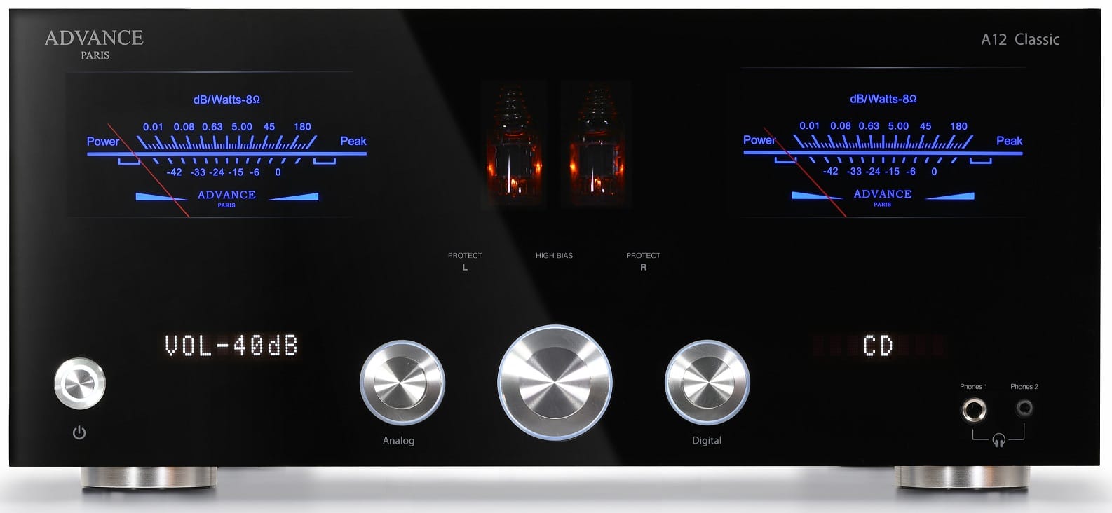 De Advance Paris A12 Classic is een krachtigere versie van de A10 Classic. Een geïntegreerde versterker met vacuümbuizen in het voorversterkergedeelte voor een warme weergave en een betrouwbare dynamische eindversterker voor zeer krachtige weergaven. De A12 Classic is een geïntegreerde versterker met D/A Converter. De versterker heeft 270 Watt vermogen per kanaal.Met de A12 Classic geïntegreerde versterker is er een audiofiele geïntegreerde versterker, geïnspireerd op de beroemde X-i1100, geprezen om zijn verleidelijke muzikaliteit en levendigheid! De A12 Classic is volledig berekend op de toekomt en gebruiksvriendelijk. Hoewel het klassieke ontwerp tijdloos blijft, combineert hij een ECC81/12AT7 buizenvoorversterker met een 2x 270 Watt klasse AB push-pull versterker. Kortom, het beste van twee werelden. Moderniteit wordt ook weergegeven dankzij een microprocessor die alle functies beheert die worden ingeschakeld door de centrale encoder, waarop een lange of korte druk toegang geeft tot de menu’s.