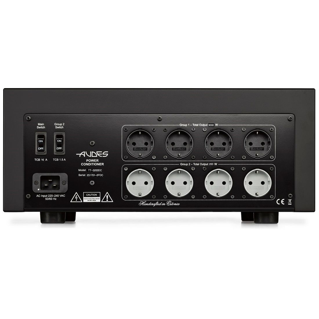 De Audes TT-3200 DC Power Conditioner is ontwikkeld voor de stroomvoorziening van High-End en Hi-Fi apparatuur. Het hart van het apparaat bestaat uit twee door Audes ontworpen en gebouwde symmetrische ringkerntransformatoren (230 VAC / 115 + 115 VAC) die uw audio-installatie volledig isoleren van het stroomnet.Krachtige dubbele transformatoropbouwDe TT-3200DC beschikt over:Hoofdtransformator (3000 VA) – voor eindversterkers en apparatuur met hoog stroomverbruik.Tweede transformator (200 VA) – speciaal voor bronapparaten en apparaten met schakelende voedingen (SMPS).Deze gescheiden structuur voorkomt dat storingen of vervormingen van apparaten met een SMPS de gevoelige analoge audiocomponenten beïnvloeden. Apparaten die op groep 1 zijn aangesloten, zijn volledig geïsoleerd van apparaten die op groep 2 zijn aangesloten.Belangrijkste kenmerkenVolledige galvanische scheiding van het lichtnetSymmetrische uitgangsspanning met kunstmatige middenaftakkingZeer lage uitgangsimpedantie – levert moeiteloos hoge stroompieken met stabiele spanningSoftstart-technologie – beperkt inschakelstromen en voorkomt storingen bij andere apparatenIngebouwde DC-blocker – voorkomt brom en trillingen door gelijkstroom (DC-offset) in het lichtnetThermische beveiliging: schakelt automatisch uit bij 90 °C en herstelt bij 75 °CBeperkte elektromagnetische straling dankzij zorgvuldige constructie (plaats niet direct naast draaitafels of phono-preamps).Voordelen voor jouw Hi-Fi systeemDe TT-3200DC levert maximale stabiliteit en zuiverheid in de stroomvoorziening van uw audio-installatie. Hierdoor klinkt uw systeem dynamischer, stiller en gedetailleerder, met meer muzikaliteit en rust. Storingen vanuit het lichtnet of andere apparaten worden effectief buiten gesloten.
