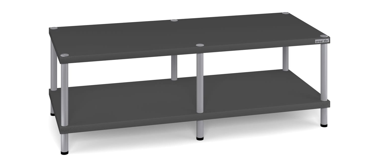 De Trend Line racks vormen de betaalbare middenklasse van Creaktiv. Met een plaatdikte van 28mm en een ijzersterke toplaag van Melamine. In enkele, dubbele en driedubbele breedtes en standaard uitbreidbaar met extra verdiepingen, bieden deze racks plaats aan iedere installatie, van klein tot groot. Voor de Trend 1, 2 en 3 kan optioneel gekozen worden uit verschillende voeten. Draagvermogen van de plateaus bedraagt 60kg, de buizen hebben een diameter van 35mm en kunnen in zwart of zilver geleverd worden. De standaard buislengte is 250mm en 170mm. Zie de accessoirelijst voor alle mogelijke opties.