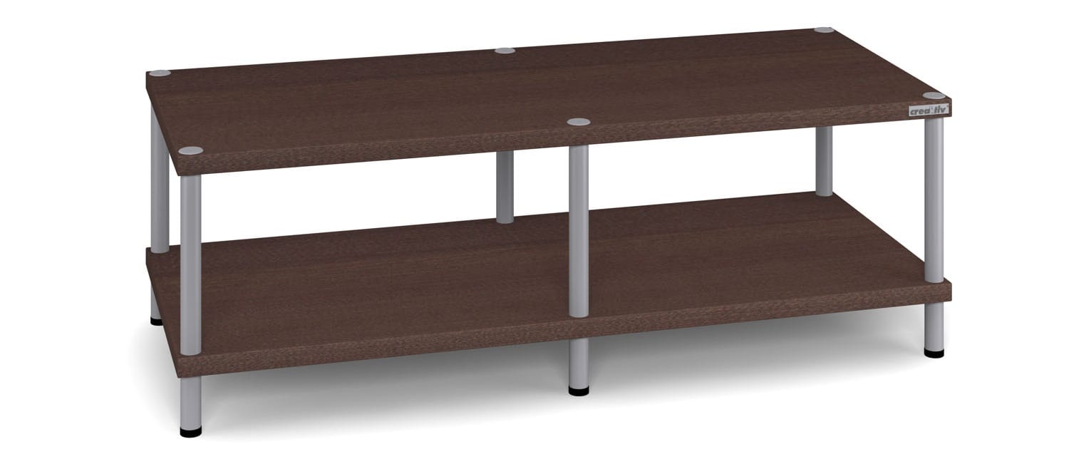 Creaktiv Trend Line 2-2 audio meubelAudio Rack2 niveaus, dubbele breedteBreedte 1160 mm (buitenmaat), 2x 515 mm binnenmaatDiepte 480 mm (buitenmaat)Schaphoogte naar keuze 170 of 250 mm per niveau te kiezen (standaard 1x 250)Creaktiv Trend LineDe Trend Line racks vormen de betaalbare middenklasse van Creaktiv. Met een plaatdikte van 28mm en een ijzersterke toplaag van Melamine. In enkele, dubbele en driedubbele breedtes en standaard uitbreidbaar met extra verdiepingen, bieden deze racks plaats aan iedere installatie, van klein tot groot. Voor de Trend 1, 2 en 3 kan optioneel gekozen worden uit verschillende voeten. Draagvermogen van de plateaus bedraagt 60kg, de buizen hebben een diameter van 35mm en kunnen in zwart of zilver geleverd worden. De standaard buislengte is 250mm en 170mm. Zie de accessoirelijst voor alle mogelijke opties.
