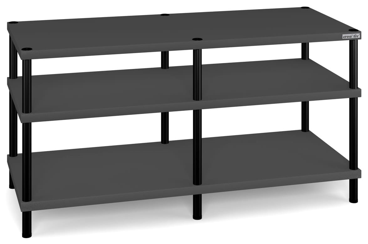 De Trend Line racks vormen de betaalbare middenklasse van Creaktiv. Met een plaatdikte van 28mm en een ijzersterke toplaag van Melamine. In enkele, dubbele en driedubbele breedtes en standaard uitbreidbaar met extra verdiepingen, bieden deze racks plaats aan iedere installatie, van klein tot groot. Voor de Trend 1, 2 en 3 kan optioneel gekozen worden uit verschillende voeten. Draagvermogen van de plateaus bedraagt 60kg, de buizen hebben een diameter van 35mm en kunnen in zwart of zilver geleverd worden. De standaard buislengte is 250mm en 170mm. Zie de accessoirelijst voor alle mogelijke opties.
