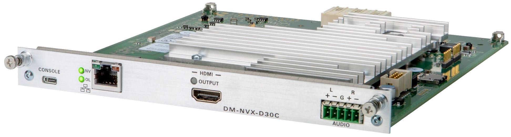 De Crestron DM-NVX-D30C is een DigitalMedia 4K60 4:4:4 HDR Netwerk AV-decoderkaart die kan worden ingebouwd in het Crestron DMF-CI-8 rack chassis. Een betrouwbare, krachtige AV over IP-decoder die 4K60 4:4:4-video ontvangt via standaard Gigabit Ethernet zonder waarneembare latency of kwaliteitsverlies. Rack-monteerbaar kaartframe. Ondersteunt HDR10 en HDCP 2.2. Biedt een veilige 4K-signaalrouteringsoplossing voor high-end residentiële videodistributie.