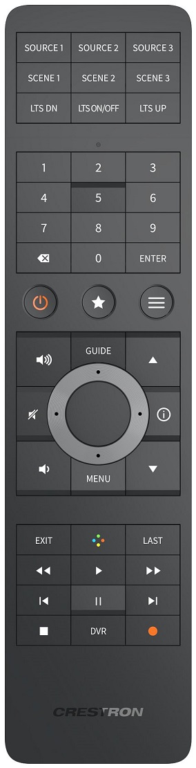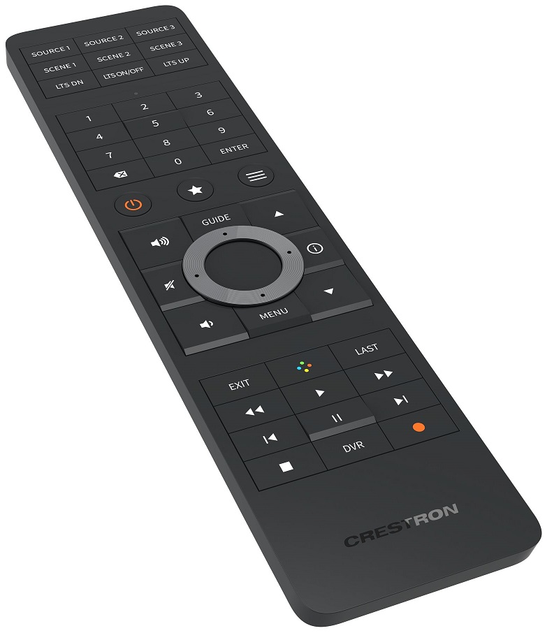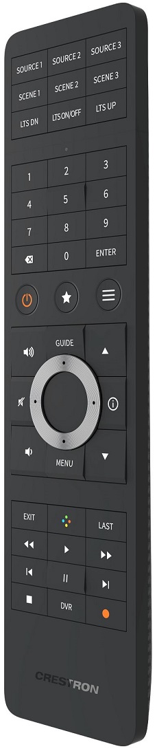 De Crestron HR-310-I-B is een handheld afstandsbediening, uitgevoerd in zwart. De Crestron HR-310 is een duurzame handafstandsbediening met verlichte, graveerbare knoppen. De krachtige draadloze infiNET EX-prestaties garanderen betrouwbare RF-connectiviteit in diverse omgevingen. Bewegingsdetectie activeert de afstandsbediening wanneer deze wordt vastgepakt, zodat deze altijd klaar is voor gebruik. De HR-310 kan ook worden gecombineerd met Crestron Home OS en andere Crestron-bedieningsoplossingen voor volledige controle over audio, video, verlichting, zonwering en andere voorzieningen.Touchscreenknoppen met achtergrondverlichtingTouchscreenknoppen met achtergrondverlichting bieden toegang tot alles wat u nodig hebt om tv te kijken, naar muziek te luisteren, door schermmenu’s te navigeren en door media te bladeren. Elke knop is gelabeld voor eenvoudige bediening. Het metalen vijfwegs-duimpad maakt directionele navigatie mogelijk bij normaal gebruik en verandert van kleur wanneer het in de vierkleurenmodus staat om toegang te geven tot de groene, blauwe, rode en gele optieknoppen. Deze gekleurde knoppen worden gebruikt om speciale functies te openen.Elke knop op de HR-310 is volledig programmeerbaar voor het aanpassen van het audiovolume en het wisselen van kanalen, het bladeren door een mediabibliotheek of programmagids, het bedienen van een DVR of dvd-speler, of het bedienen van een pan/tilt-camera.Negen toewijsbare knoppenDe bovenkant van de HR-310 is voorzien van negen vooraf gelabelde knoppen voor basis AV-bronselectie en lichtregeling. Deze knoppen kunnen worden verwisseld voor knoppen met een eigen label, zodat u ze kunt personaliseren met bron- of scènenamen. Dankzij deze aanpassing kunnen de knoppen ook extra functies hebben, zoals het selecteren van kamers of het bedienen van rolgordijnen, gordijnen of klimaatinstellingen. Bovendien kan de ruimte boven deze knoppen worden gegraveerd met een kamernaam of een andere aanduiding.BewegingssensorDe ingebouwde accelerometer activeert de HR-310 direct wanneer hij wordt opgepakt of verplaatst, zodat hij altijd klaar is voor gebruik.infiNET EX Draadloze TechnologieDe uiterst betrouwbare infiNET EX draadloze technologie zorgt voor stabiele tweeweg RF-communicatie in een woning of bedrijfspand. De HR-310 communiceert met een Crestron-besturingssysteem via een infiNET EX draadloze gateway en kan functioneren als onderdeel van een compleet netwerk van draadloze bedieningspanelen, dimmers, gemotoriseerde rolgordijnen, thermostaten, deursloten, sensoren en andere apparaten.Verlengde batterijduurBij normaal gebruik kan de HR-310 zes maanden werken op een set van drie AAA-alkalinebatterijen (meegeleverd). Om ervoor te zorgen dat u en uw gasten nooit met lege batterijen worden geconfronteerd, kan de HR-310 worden geconfigureerd om het batterijniveau te rapporteren en een waarschuwing voor een lege batterij te sturen naar een mobiele telefoon, computer, Crestron-touchscreen of centrale helpdesk.