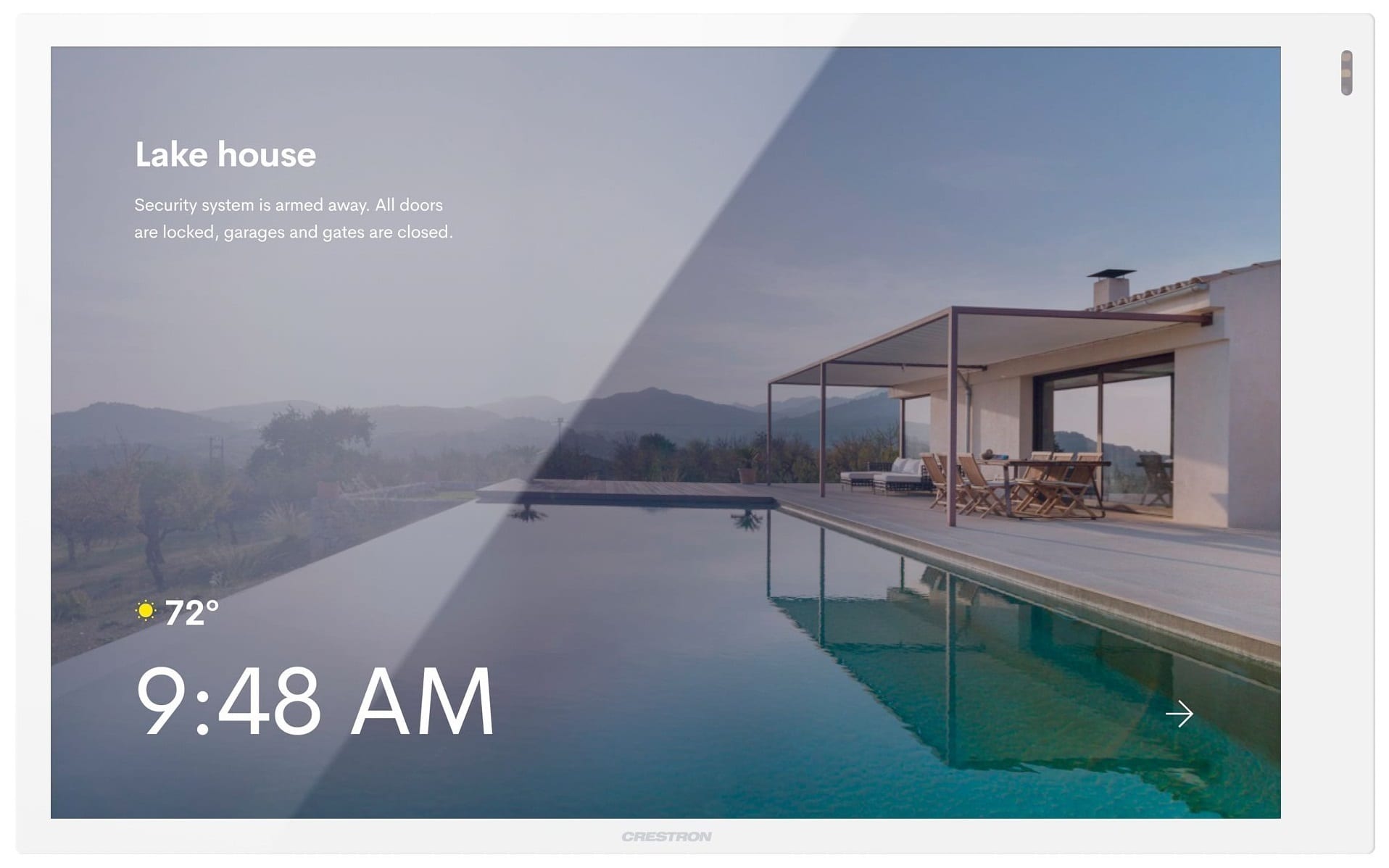 De Crestron TSW-1070R-serie is een stijlvol en veelzijdig touchscreen voor wandmontage dat speciaal is ontworpen voor de Crestron Home OS-applicatie. De TSW-1070R heeft een capacitief touchscreen van 257 mm (10,1 inch). PoE- en Wi-Fi-netwerkconnectiviteit en een uitgebreid assortiment montageaccessoires vereenvoudigen nieuwe installaties en installaties achteraf. Het touchscreen ondersteunt Crestron HOME OS, H.265/H.264 streaming video, Rava SIP intercom, Wifi en PoE+.Geavanceerde touchscreenbediening. De TSW-1070R biedt een gestroomlijnde en krachtige gebruikersinterface voor het besturen van technologie in huis via de Crestron Home-app. Het touchscreen biedt een intuïtieve interface die volledig aanpasbaar is met gebruiksvriendelijke capacitieve bedieningselementen, echte feedback en real-time statusweergave. Een ingebouwde naderingssensor wekt het scherm zonder tussenkomst van de gebruiker, en automatische helderheidsregeling zorgt voor een optimale zichtbaarheid onder wisselende lichtomstandigheden.