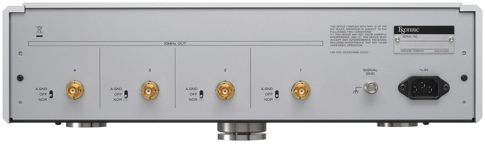 Esoteric G-01XD – Referentie Master Clock Generator voor High-End Digitale AudioDe Esoteric G-01XD is een ultra-precisie master clock generator die ontworpen is om digitale audiosystemen naar een hoger prestatieniveau te tillen. In high-end audio is timing cruciaal, en de G-01XD levert een uitzonderlijk stabiel 10 MHz referentiesignaal dat digitale bronnen zoals DAC’s, netwerkspelers en transports perfect synchroniseert. Het resultaat is een hoorbare verbetering in focus, ruimtelijkheid en muzikale samenhang.Centraal in het ontwerp staat de exclusieve Master Sound Discrete Clock, een volledig discrete OCXO-klokmodule met geavanceerde temperatuurcontrole. Deze technologie minimaliseert fase-ruis en garandeert een extreem hoge frequentienauwkeurigheid. Door deze uitzonderlijke stabiliteit ontstaat een rustiger geluidsbeeld, met meer diepte, preciezere plaatsing van instrumenten en een natuurlijker timing binnen complexe muziekpassages.De G-01XD beschikt over vier onafhankelijke 10 MHz-uitgangen, waardoor meerdere digitale componenten gelijktijdig kunnen worden gesynchroniseerd. Dankzij de hoogwaardige buffertechnologie blijft het kloksignaal krachtig, stabiel en vrij van interferentie, zelfs wanneer meerdere apparaten zijn aangesloten. Dit maakt de G-01XD tot een essentieel onderdeel binnen een referentieklasse digitaal audiosysteem.De interne constructie is volledig geoptimaliseerd voor maximale signaalzuiverheid. Gescheiden voedingen voor de klokmodule, besturing en uitgangscircuits reduceren onderlinge beïnvloeding tot een minimum. Het zware, resonantiearme chassis beschermt de gevoelige klokarchitectuur tegen externe trillingen en elektromagnetische invloeden, wat direct bijdraagt aan de uiteindelijke geluidskwaliteit.Met een extreem hoge nauwkeurigheid en een robuuste mechanische opbouw is de Esoteric G-01XD de ideale keuze voor wie het maximale uit zijn high-end DAC of digitale bron wil halen. Deze high-end master clock generator vormt de basis voor optimale timing, verbeterde microdynamiek en een nog natuurlijkere muzikale beleving binnen compromisloze audiosystemen.