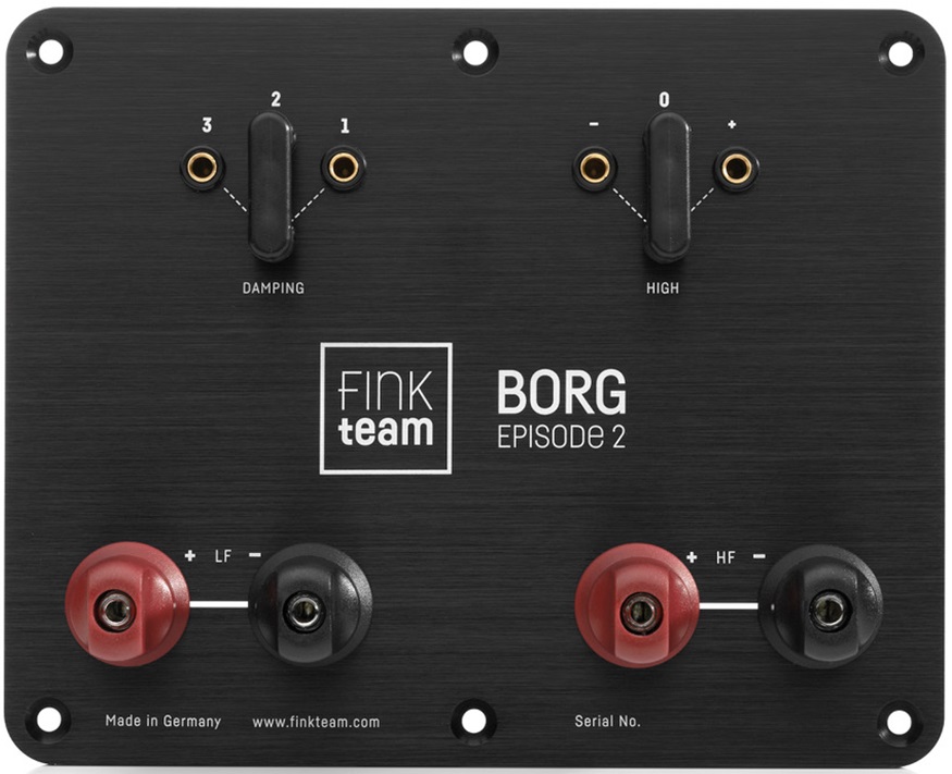 Verzet is zinloos. Luister naar de FinkTeam Borg Episode 2 luidspreler. Het eerste FinkTeam-ontwerp wat in productie ging, nu in de Episode 2 versie. De meeste luisteraars hebben geen extreem grote kamers, de Borg functioneert uitstekend in kleine tot middel grote ruimtes en levert kracht, schaal en subtiliteit bijna in dezelfde muziekmaat. De Borg is in staat je volledig te betrekken in de muzikale boodschap waar je naar luistert. FinkTeam Borg Episode 2 is een tweeweg vloerstaand speaker ontwerp met een 10,25 inch krachtige mid-/basdriver en de revolutionaire Air Motion Transformer (AMT) tweeter.Borg Episode 2 is een vernuftig ontwerp, aangezien de ontwikkeling van een 10,25 inch mid-/bas driver, bepaald niet eenvoudig is. De combinate van deze driver samen met de AMT tweeter levert een unieke ??vlakke frequentierespons op en nog belangrijker, een langzame, gelijkmatige mid/hoog-roll-off in de vermogensrespons, wat een aanzienlijk en zeer gerespecteerd staaltje techniek oplevert. Er is geen off-axis gat in het middeneffect.Borg Episode 2 is ontworpen als een huiselijke luidspreker. De lage frequentie-afstemming is ontworpen om het gewicht en het drama van de muziek in de ruimte neer te zetten, zonder onnatuurlijke overheersing in de weergave. Het maakt de Borg Episode 2 betrekkelijk eenvoudig aan te sturen, waarbij een extreme investering in elektronica niet nodig is, om toch van alle Borg-talenten te kunnen genieten.