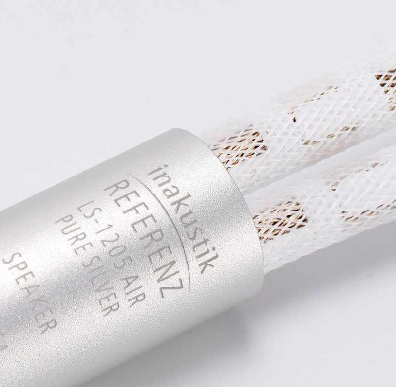 Met de Inakustik LS-1205 AIR Pure Silver is het momenteel meest filigrane model in AIR-technologie nu ook verkrijgbaar als puur zilveren kabel. De structuur, afmetingen en aderopstelling van deze kabel komen overeen met de koperen versie van de LS-1205 AIR. Net als bij de LS-4005 AIR Pure Silver en LS-2405 AIR Pure Silver zijn de geleiders geoptimaliseerd. Ook voor de LS-1205 AIR Pure Silver wordt puur zilver gebruikt als geleidermateriaal. Onder realistische omstandigheden is zilver momenteel het meest geleidende materiaal. Met 61,35 S/m (Siemens pro Meter) is de geleidbaarheid ongeveer zes procent beter dan die van koper. De elektronen bewegen 1,5 keer sneller dan in een koperen geleider.Dankzij het Air Helix-ontwerp lopen de geleiders vrijhangend door de lengte van de kabel. Door de Air Helix-architectuur kunnen signaalgeleiders tot vrijwel 100% door lucht worden geïsoleerd. Voor het ondersteunende raamwerk zijn speciale clips ontwikkeld. Deze clips, die op gedefinieerde afstanden in de kabels zijn geplaatst, houden de spiraalvormige geleiders uit elkaar. Kabelflexibiliteit wordt verzekerd door middel van twee stutten die ervoor zorgen dat de clips bij elkaar blijven, maar ook op een precieze afstand van elkaar. Deze architectuur is uniek en zorgt voor een lage capaciteit en minimale diëlektrische verliezen – een echte mijlpaal in de zoektocht naar open en onvervalst geluid.De fysieke aanpak: minimaliseer verliezen voor natuurgetrouwe weergave. De Reference AIR-kabels transporteren audiosignalen op authentieke wijze en met een minimum aan verlies tussen bron, versterker en luidspreker. Je kunt genieten van muziek die precies de emoties weergeeft van de artiesten op het moment van opname: sensueel, subtiel, luchtig of orkestraal tot volbloed en rockend. Zang en instrumenten worden in onvervalste vorm gebracht. Alles blijft levendig en vol emotionele energie. Favoriete nummers en stukken blijven sterke gevoelens oproepen, zelfs als je ze al honderd keer hebt gehoord.De Reference LS-1205 AIR Pure Silver is een afgemonteerde Single Wire set van 2x 3 meter met Spade connectoren.Wil je deze kabel in een andere lengte?De Inakustik Reference LS-1205 AIR Pure Silver kan in elke gewenste lengte op maat geleverd worden. Neem contact met ons op voor een prijsopgave van deze kabel in de door jou gewenste lengte.