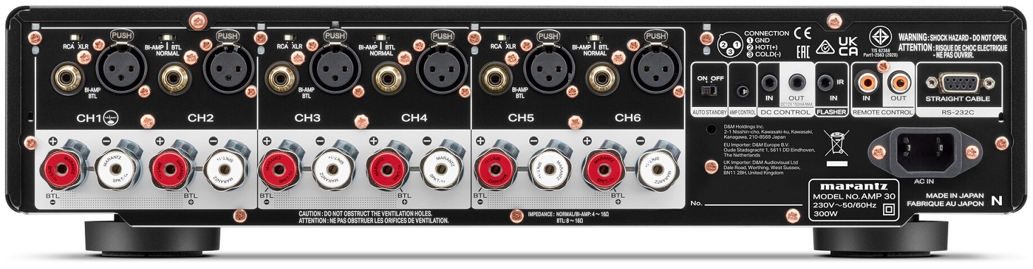 Marantz AMP 30 – 6-kanaals referentie-eindversterker met 200 watt per kanaalDe Marantz AMP 30 is een compromisloze high-end eindversterker die is ontworpen voor de meest veeleisende audiofielen en homecinema-liefhebbers. Deze versterker vormt het absolute topsegment binnen het Marantz-assortiment en combineert kracht, finesse en muzikale precisie in één indrukwekkend apparaat.Als 6-kanaals eindversterker levert de Marantz AMP 30 maar liefst 200 watt vermogen per kanaal, waardoor hij moeiteloos zelfs de meest veeleisende luidsprekers aanstuurt. Elk kanaal is afzonderlijk opgebouwd, wat resulteert in een uiterst stabiele en gecontroleerde weergave met minimale vervorming en maximale dynamiek. Dit maakt de AMP 30 ideaal voor hoogwaardige surroundopstellingen en geavanceerde homecinema-systemen, maar ook voor bi-amping of meerkanaals muzieksystemen.De kenmerkende Marantz-klanksignatuur komt volledig tot zijn recht dankzij het gebruik van zorgvuldig geselecteerde componenten en de befaamde HDAM-technologie. Het resultaat is een warme, natuurlijke en uiterst gedetailleerde geluidsweergave, waarin stemmen realistisch klinken en instrumenten hun authentieke karakter behouden. Zelfs bij hoge volumes blijft het geluidsbeeld ruimtelijk, verfijnd en perfect in balans.Ook qua bouwkwaliteit en design bevindt de Marantz AMP 30 zich op referentieniveau. De robuuste behuizing, symmetrische interne opbouw en hoogwaardige afwerking minimaliseren resonanties en interferentie, wat bijdraagt aan een zuivere signaaloverdracht. Hierdoor integreert de AMP 30 naadloos in high-end audio- en homecinema-opstellingen.Met de Marantz AMP 30 kies je voor een 6-kanaals eindversterker met 200 watt per kanaal die prestaties, betrouwbaarheid en muzikaliteit op het allerhoogste niveau combineert. Een versterker die muziek en film tot leven brengt zoals het bedoeld is.