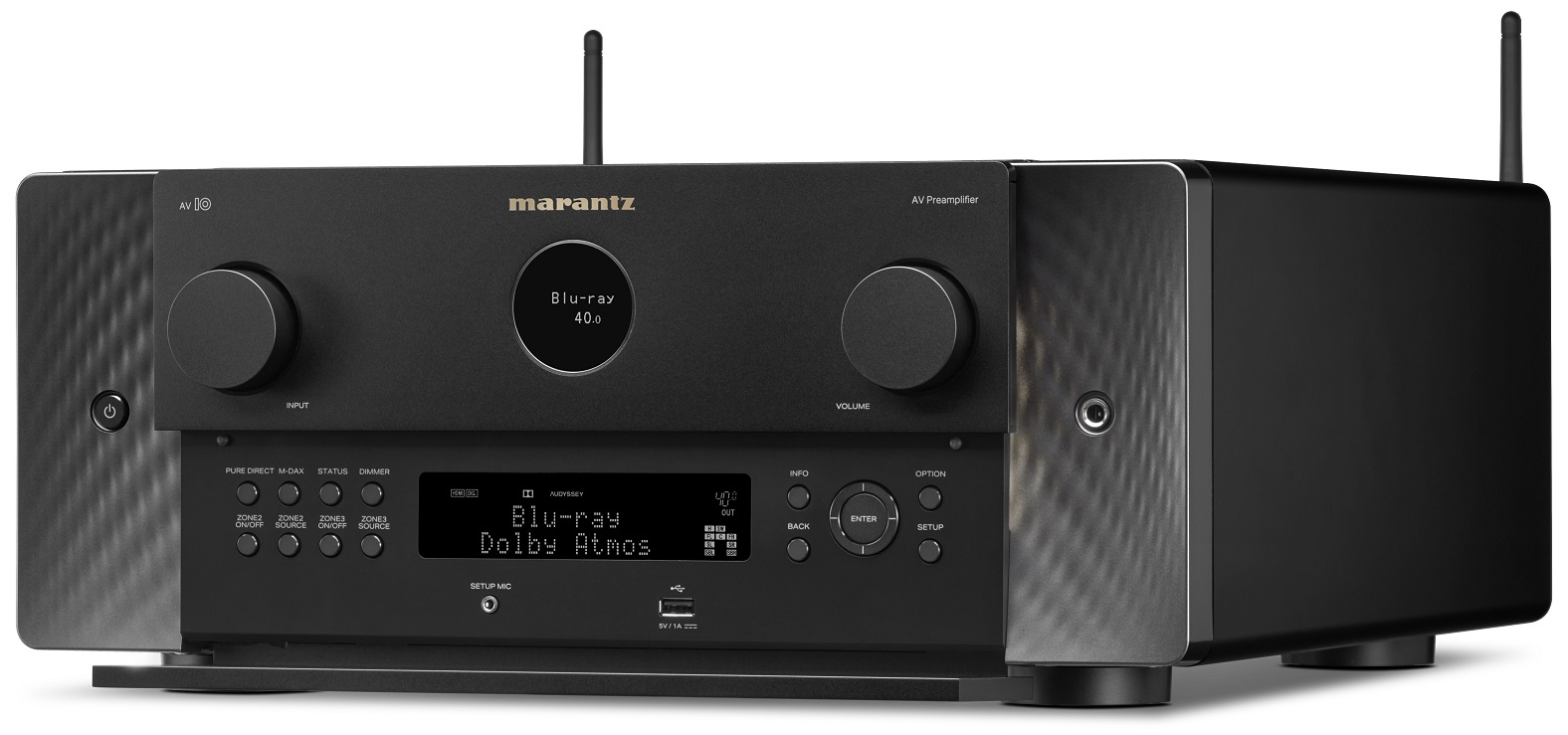 Marantz AV 10 – High-End AV-processor voor ultiem homecinema-geluidDe Marantz AV 10 is een premium AV-processor die is ontworpen voor veeleisende homecinema-liefhebbers en audiofielen die de ultieme luisterervaring zoeken. Deze 11.2-kanaals processor levert uitzonderlijke precisie, kracht en flexibiliteit, waardoor je films en muziek beleeft zoals de makers het bedoeld hebben.Dankzij de geavanceerde Marantz HDAM-technologie en zorgvuldig geselecteerde componenten reproduceert de AV10 een natuurlijk, gedetailleerd en dynamisch geluid. Stemmen klinken realistisch en instrumenten behouden hun karakter. Door de nauwkeurige signaalverwerking biedt de AV10 een breed en gelaagd geluidsbeeld, ideaal voor zowel muziek als films.De Marantz AV10 ondersteunt de nieuwste audioformaten, zoals Dolby Atmos, DTS:X, Auro-3D en IMAX Enhanced, waardoor je een volledig meeslepende surroundervaring krijgt. Daarnaast biedt hij Hi-Res audio-ondersteuning en streamingmogelijkheden via AirPlay 2, Bluetooth en netwerkstreaming. Zo speel je eenvoudig je favoriete muziek in kristalheldere kwaliteit af.Ook op het gebied van video biedt de AV10 uitstekende prestaties. Dankzij 4K Ultra HD, HDR10+, Dolby Vision en HLG wordt elk beeld scherp, helder en levensecht weergegeven. Met meerdere HDMI-ingangen en geavanceerde videoverwerking sluit je eenvoudig gameconsoles, Blu-ray-spelers en mediaspelers aan.Het ontwerp van de Marantz AV10 combineert technische perfectie met luxe uitstraling. De robuuste behuizing, symmetrische interne opbouw en hoogwaardige afwerking minimaliseren trillingen en interferentie, wat zorgt voor een pure en zuivere signaalweergave.Met de Marantz AV10 kies je voor een high-end AV-processor die kracht, precisie en veelzijdigheid combineert. Het is de perfecte keuze voor iedereen die een professionele homecinema-ervaring wil creëren met indrukwekkend geluid en levensechte beelden.Marantz AV10 – de kern van je ultieme homecinema-systeem.