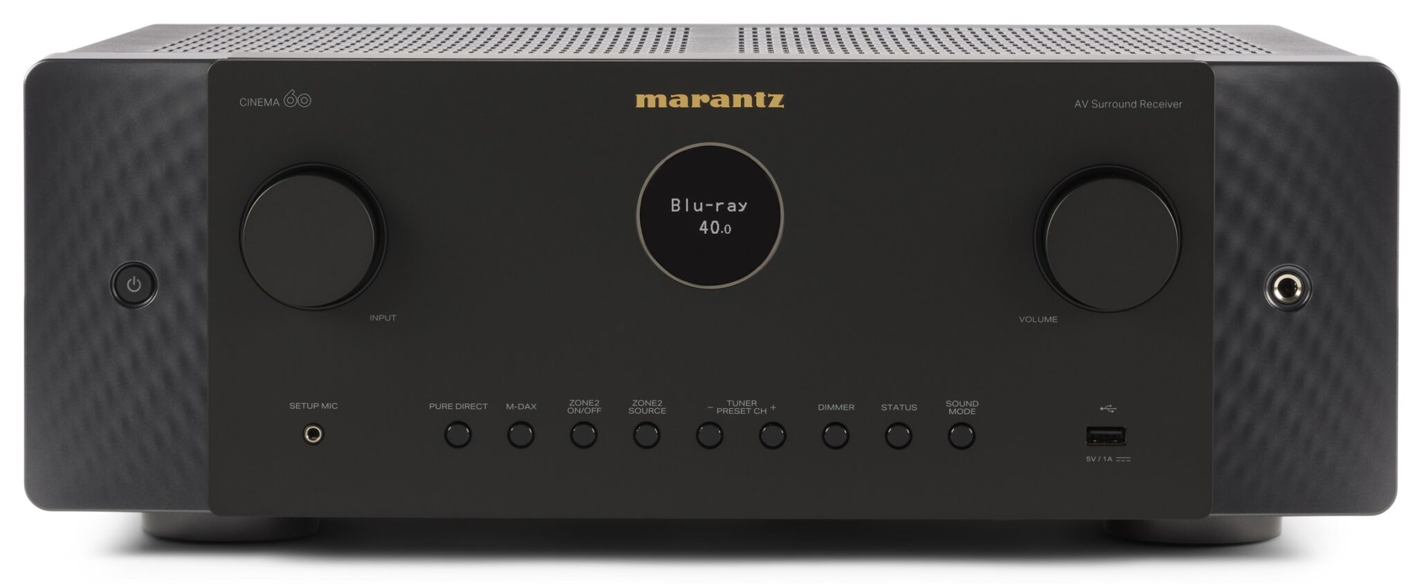 De Marantz CINEMA 60 is een 7.2-kanaals AV receiver met 100 watt per kanaal. Deze hoogwaardige 7.2-kanaals AV-receiver met 100 watt per kanaal versterking biedt Dolby Atmos, DTS:X, 8K Ultra HD en streaming via HEOS Built-in. De CINEMA 60 is de nieuwe standaard op het gebied van luxe thuisbioscoopervaringen.Ongeëvenaarde Prestaties. Meeslepend en ruimtelijk, warme en rijke tonen en levensechte dynamieken zijn de eigenschappen waar het Marantz-geluid om bekendstaat.Toonaangevende Technologie. De CINEMA 60 wordt geleverd met de nieuwste meeslepende audioformaten, 8K-video, ruimteoptimalisatie, streaming en meer technologieën voor een eenvoudigere en verbeterde luisterervaring.Prachtig Slank Design. De CINEMA 60 is een moderne uitvoering van tijdloze ontwerpprincipes. Hij is voorzien van onze iconische Marantz-patrijspoort en het symmetrische design waar Marantz om bekendstaat.