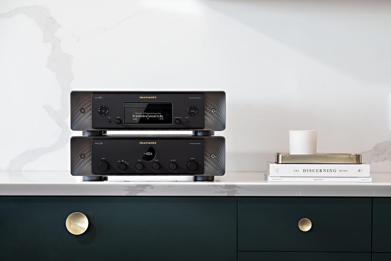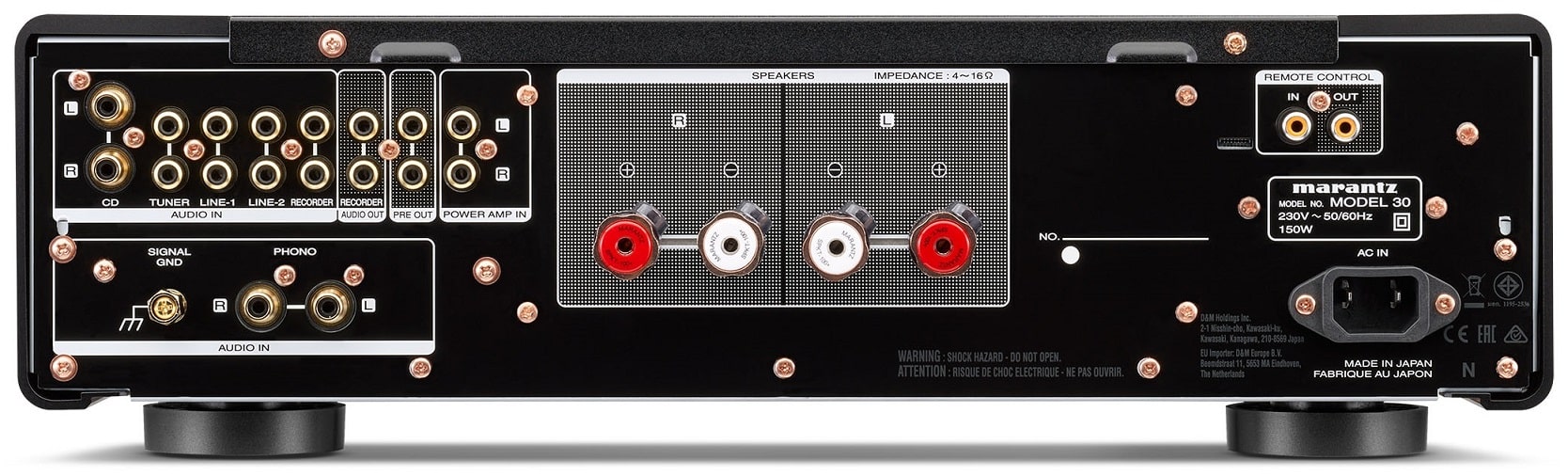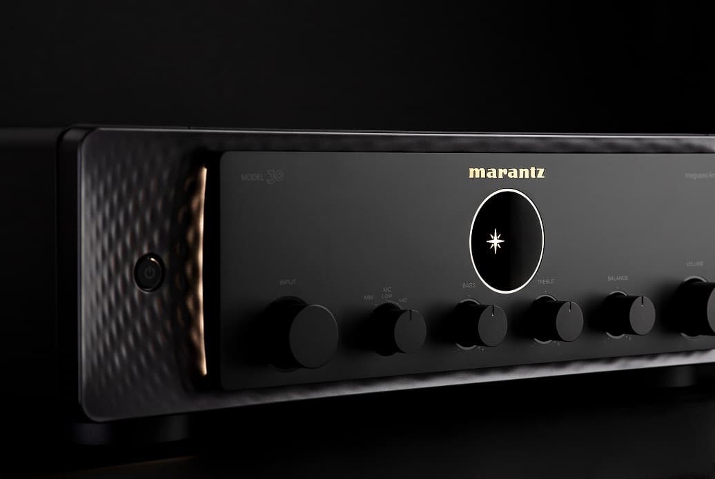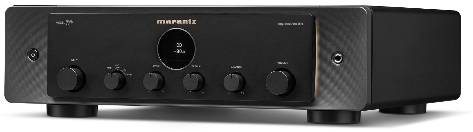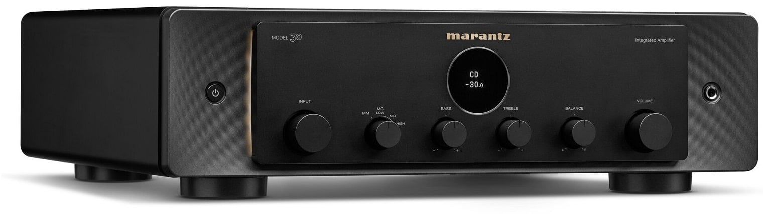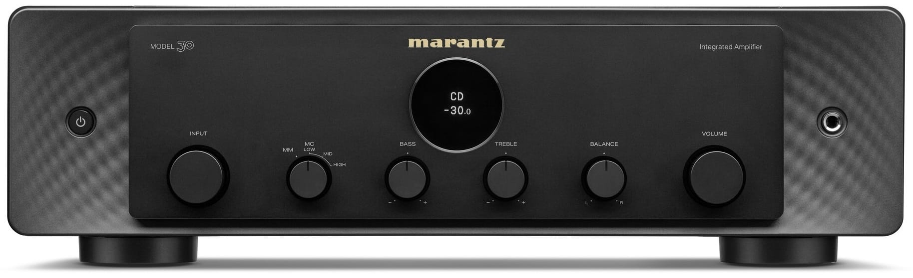 Marantz Model 30 pure analoge geïntegreerde stereo versterkerDe Marantz Model 30 is een hoogwaardige geïntegreerde stereoversterker die is ontworpen voor muziekliefhebbers die maximale geluidskwaliteit en muzikaliteit zoeken. Deze versterker combineert het kenmerkende Marantz-design met moderne audiotechnologie en vormt het hart van een hoogwaardige hifi-installatie. Door de zorgvuldig ontworpen audio-architectuur en hoogwaardige componenten levert de Model 30 een rijk, gedetailleerd en natuurlijk geluidsbeeld dat zowel analoge als digitale muziek optimaal tot zijn recht laat komen.De versterker is opgebouwd volgens een volledig discreet ontwerp waarbij het audiosignaal zo zuiver mogelijk wordt verwerkt. Marantz maakt gebruik van eigen HDAM-modules die zijn ontwikkeld voor snelle en nauwkeurige signaalverwerking. Hierdoor ontstaat een open en dynamisch geluidsbeeld met veel detail en controle. De Model 30 levert voldoende vermogen om een breed scala aan luidsprekers moeiteloos aan te sturen, waarbij stabiliteit en muzikaliteit behouden blijven, zelfs bij complexe muziekpassages.De Marantz Model 30 past perfect in moderne hifi-systemen waarin digitale audio streaming en netwerk-audio een belangrijke rol spelen. In combinatie met een netwerkspeler, DAC of muziekserver vormt deze versterker een uitstekende basis voor het afspelen van high-resolution muziekbestanden en streamingdiensten. Door de hoogwaardige versterkertechnologie blijft het audiosignaal zuiver en transparant, waardoor details, dynamiek en ruimtelijkheid in de muziek volledig tot hun recht komen.Ook liefhebbers van vinyl kunnen met de Model 30 rekenen op uitstekende prestaties. De geïntegreerde phono-versterker ondersteunt zowel MM- als MC-elementen en is ontworpen om analoge signalen nauwkeurig te versterken. Hierdoor worden platen weergegeven met een natuurlijke klank, veel detail en een overtuigende muzikale presentatie.Naast de audioprestaties valt ook het ontwerp van de Marantz Model 30 op. Het stevige chassis is ontwikkeld om trillingen en interferentie te minimaliseren, terwijl het minimalistische frontpaneel met ronde display zorgt voor een tijdloze uitstraling. Dankzij deze combinatie van krachtige prestaties, hoogwaardige bouwkwaliteit en verfijnde audiotechniek is de Marantz Model 30 een uitstekende keuze voor muziekliefhebbers die een hoogwaardige versterker zoeken voor een modern hifi-systeem.