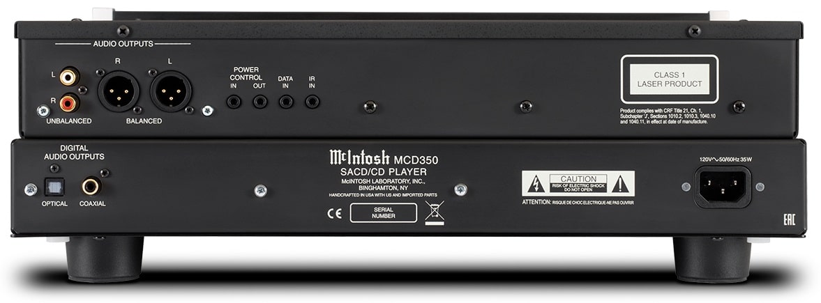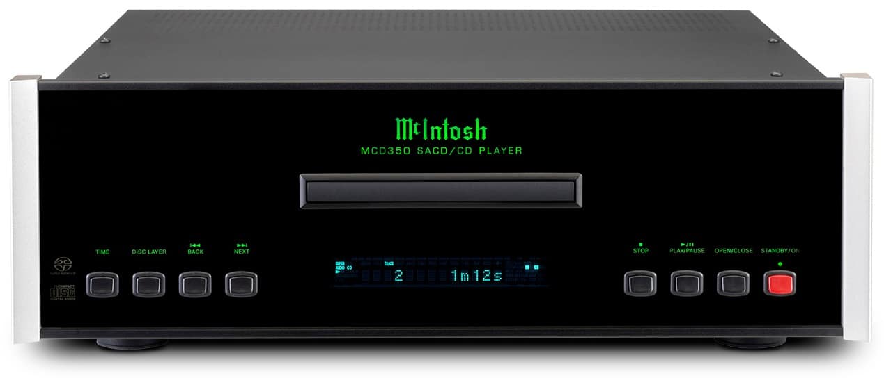De McIntosh MCD350 is een nieuwe instap in het CD speler assortiment van McIntosh. De MCD350 speelt op het allerhoogste niveau zowel CD als SACD af. Met de MCD350 ervaar je een ongekende en pure beleving van je favoriete CD’s en SACD’s. De speler heeft een gebalanceerde 2 kanaals, 32-bit/192kHz digitaal naar analoog converter. Fixed analoge uitgangen zijn er zowel gebalanceerd als ongebalanceerd en er zijn coaxiale en optische digitale uitgangen zodat er ook gebruik gemaakt kan worden van een externe D/A converter.