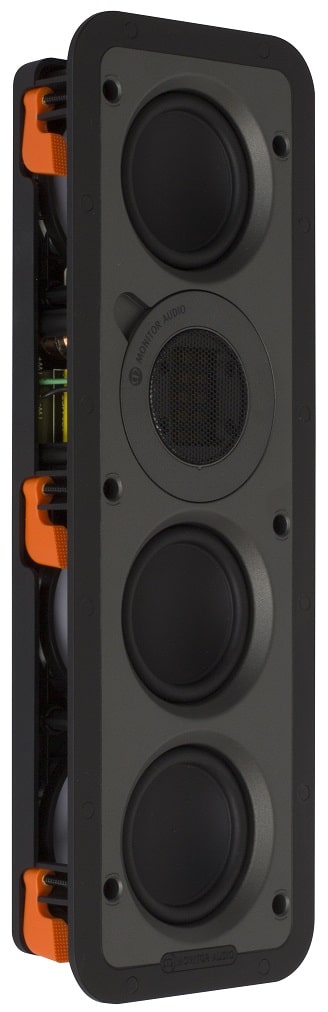 Het vlaggenschip uit de Super Slim-serie is de Monitor Audio WSS430 welke moeiteloos de meest kritische audiofiele en bioscoopervaringen levert. Door gebruik te maken van ontwerpprincipes en technologie van de vlaggenschip Platinum II-luidsprekermodellen, daagt de prestatie van deze formidabele muurinbouw uit die van de beste high-end box-luidsprekerontwerpen. Het vlaggenschip van de WSS430 behoudt de geringe diepte van zijn broers en zussen – alle drie hebben identieke afmetingen – en biedt superieure audioprestaties, gebaseerd op ontwerpprincipes en materialen, van de hoogwaardige Platinum II-luidsprekers van Monitor Audio.De topper uit de WSS-reeks maakt gebruik van schotelvormige C-CAM-kegels om ultieme diafragmastijfheid te garanderen – het belangrijkste doel hier is om vervorming te verminderen. Hoge sterkte Neo-magneten en grotere spreekspoelen zorgen voor een ongelooflijke aandrijfkracht, lage magnetische lekkage en een slank profiel. Het magnetische systeem biedt een ‘onderhangende’ motoropstelling, waardoor de spoel in de opening blijft, vervorming verder wordt verminderd en de belastbaarheid wordt vergroot.Maar 50 mm diep, er gebeurt veel met de WSS430. De MPD hoogfrequente transducertechnologie – ook van Monitor Audio’s vlaggenschip Platinum II-ontwerpen – zorgt voor ongelooflijk lage vervorming en levert een heldere hoge frequentie tot meer dan 50 kHz. Verwijder de magnetische voorrand van het model en je kunt de tweeter draaien om de optimale spreiding te verkrijgen wanneer je het model in liggende stand gebruikt.