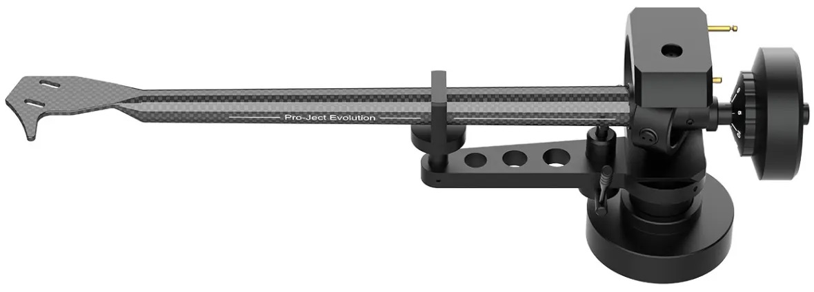 De Pro-Ject EVO 9 CC is een 9-inch toonarm met hoge precisie en een armbuis van koolstofvezel (carbon), de volgende generatie. De toonarm is één van de belangrijkste onderdelen van een draaitafel en beïnvloedt daarom niet alleen de klank, maar geeft deze ook op een specifieke manier vorm.De EVO CC toonarm maakt gebruik van een omgekeerd cardanisch ABEC 7-kwaliteitslager met vier roestvrijstalen punten. Dit lagertype is zeer stabiel en heeft een lage wrijving, wat een duidelijke spoorvolging garandeert. Dit resulteert in een gedetailleerd en open klankbeeld. Alle micro-informatie uit de groef blijft behouden. Het lager zit in een volledig aluminium behuizing, wat voor de nodige stabiliteit zorgt.De EVO CC toonarmbuis is gemaakt van koolstofvezel uit één stuk, dat tegelijkertijd licht en sterk is. Als je goed kijkt, zie je dat de armbuis een conische vorm heeft, waardoor deze dunner wordt. Dit ontwerp vermijdt staande golfreflecties. De armbuis is vastgezet met een enkele schroef, zodat deze kan worden gedraaid en de azimut gemakkelijk kan worden aangepast.De toonarmhoogte kan traploos worden aangepast door de twee stelschroeven los te draaien. Het geeft u de mogelijkheid om de toonarm aan te passen aan hoogteveranderingen om altijd de beste geluidskwaliteit te bereiken. Het instellen en experimenteren met de VTA en Azimuth is cruciaal om elk laatste beetje prestatie uit jouw cartridge te halen.