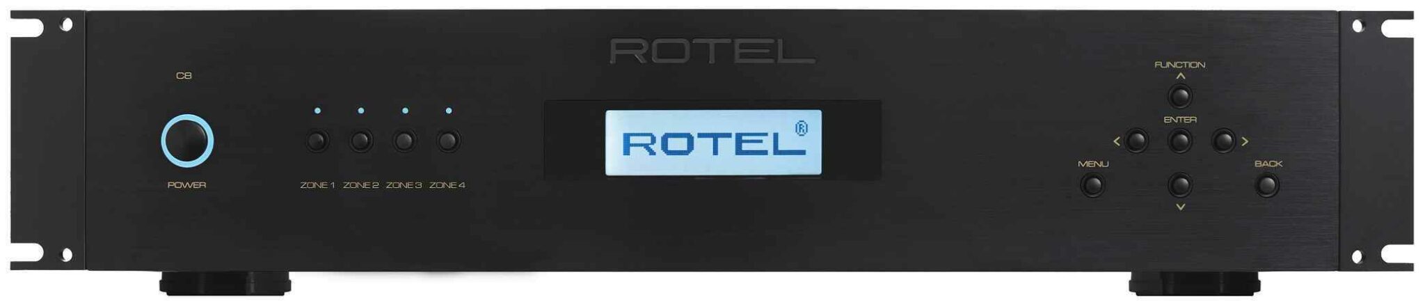 Prestaties en efficiëntie komen samen in Rotel’s C8 Class AB Custom Installation Amplifier, die 8 kanalen premium audio aanstuurt met 70 watt per kanaal, of overbrugd met 140 watt in 4 ohm belastingen met behulp van de eigen versterkingstechnologie van Rotel. De extra grote, in eigen huis vervaardigde ringkerntransformator drijft zestien uitvoerapparaten aan voor moeiteloze, gecontroleerde basenergie.Voor ultieme installatieflexibiliteit bevat de C8 4 analoge ingangen in een matrix voor alle zones. Display en bedieningselementen op het voorpaneel bieden bron- en onafhankelijke instellingen voor volume, lage en hoge tonen.Besturingssysteemintegratie is beschikbaar via IP- en RS232-interfaces en 12-volt trigger.De aangepaste 2U-hoogte vereist geen vrije ruimte boven of onder bij rekmontage.