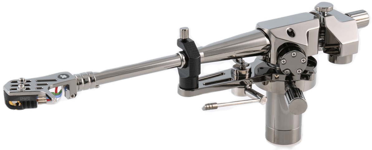 Na jarenlang gewerkt te hebben met externe producenten voor de beste toonarm voor de betere Transrotor modellen, werd besloten ook zelf een high-end toonarm te ontwerpen en produceren. Transrotor beschikte hiervoor ruimschoots aan praktische ervaring met de beste toonarmen ter wereld, relevante kennis en toegang tot de modernste productiemethoden. Het doel werd topprestatie, gebruiksgemak en eenvoudige installatie. Daarmee werd de oa. de 9 inch Transrotor TRA 9 toonarm geboren. Met behulp van zijn fijne mechanica om geen enkele stempel op muziek te drukken en zelfs extreem hoogwaardige pickups in staat te stellen hun volledige sonische potentieel te ontwikkelen. Het creëren van een resonantie-vrije toonarmbuis is van doorslaggevend belang. Daarom koos het ontwerpteam van Transrotor voor een tweedelige oplossing met een taps toelopend deel dat is verbonden met het lagerblok. In eerste instantie was het de bedoeling om een ??tweede buis in te brengen en de headshell aan de andere kant te bevestigen. Als de buizen elkaar overlappen, zouden ze elkaar onderling verzwakken. Er was echter geen standaardbuis met de extreem nauwe toleranties die voor deze toepassing vereist zijn, op de markt te vinden. Daarom is de voorste toonarmbuis cnc-gefreesd uit een massief stuk aluminium.Maar het zijn niet alleen de verschillende afmetingen van de twee buizen die resonantie minimaliseren. De ervaring van Transrotor met het bouwen van draaitafels maakte het mogelijk om verschillende aluminiumlegeringen zo te combineren dat ze optimaal gedempt worden. Maar bij een toonarm gaat het niet alleen om trillingsbeheersing, het gaat er ook om deze zo snel mogelijk af te leiden. Daarom werd het idee om de twee buizen te verlijmen afgewezen. Dankzij de zeer lage toleranties raken de twee buizen elkaar over een groot oppervlak en hoeven ze alleen nog maar vastgeschroefd te worden.Het massieve lagerblok is bovenop volledig plat ontworpen. Met deze functie kun je eenvoudig de horizontale uitlijning van de arm controleren door tijdens het afstellen een waterpas te plaatsen. Voor een gevoelige hoogteverstelling worden twee draadstangen gebruikt. Voor eenvoudige hoogteverstelling wordt een parallellogram van plexiglas meegeleverd met de toonarm en twee draadstangen die in de bijbehorende draadbussen worden geschroefd. Met de twee stangen kan de arm uiterst gevoelig op en neer worden bewogen.Het contragewicht is fijn verstelbaar door middel van een centraal geplaatste schroef. De lagerkracht kan tot op de tweede decimaal nauwkeurig worden ingesteld. De verchroomde messing gewichten kunnen indien nodig worden vervangen door exemplaren met verschillende gewichten. Antislipkracht wordt magnetisch gegenereerd en is fijn instelbaar. De headshell kan worden gedraaid voor azimutaanpassing.Extreem lage losbreekkrachten en zeer weinig speling zijn bepalend voor een toonarmlager. Hierdoor worden door Transrotor hoogwaardige Japanse stalen lagers gebruikt voor horizontale geleiding en keramische lagers voor verticale geleiding. Beide lagers worden tegen elkaar geschoord om ongewenste speling te voorkomen.