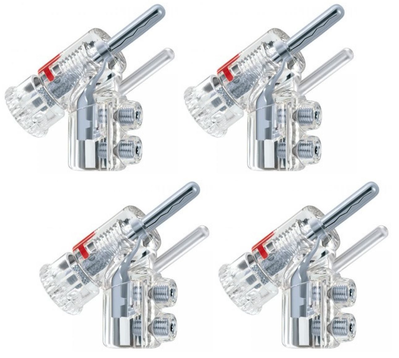 Nextgen – een nieuwe generatie stekkerverbindingen van WBT. De WBT-610 Ag banaanplug is fijn gevormd uit fijn zilver – de signaalleiding voor de nieuwe nextgen banaanstekker WBT-0610 Ag. Direct geplatineerd in een nikkelvrije afwerking om oxidatie te voorkomen. Dit zorgt voor een hoge geleidbaarheid en geen magnetische storingen. De contactpen is zo gevormd dat de drie segmenten uitzetten als de spil wordt ingedraaid, zodat hij in elk type terminal kan worden vastgezet. De resulterende constant hoge contactdruk garandeert permanent lage overgangsweerstanden.Net als de voorloper WBT-0645 neemt de nextgen-banaanconnector ook minder ruimte in beslag als hij is geïnstalleerd en kan apparatuur compacter worden opgesteld als er weinig ruimte is. WBT-0610 Ag is ook kabelvriendelijk: de hoek leidt je kabel direct naar beneden en kan niet worden beschadigd door knikken.Ondanks de fijngevoeligheid van de signaalgeleider, is WBT-0610 perfect geschikt voor de krimptechniek. De twee Torx-schroeven worden gebruikt om het gekrompen kabeluiteinde te bevestigen en de tweede schroef zet uw kabel vast om spanning te voorkomen. Dankzij de volledige isolatie is het veilig om aan te raken en dus IEC-conform. De veiligheidspin voorkomt ook dat de stekker per ongeluk in een stopcontact wordt gestoken. Hierdoor voldoet de WBT-0610 Ag ook volledig aan CE.